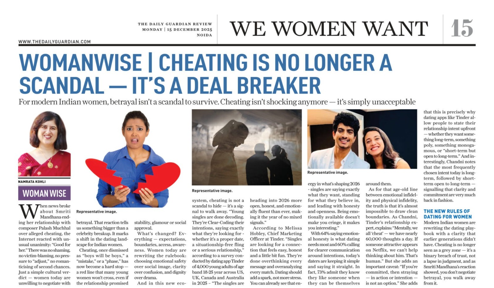 For modern Indian women, betrayal isn’t a scandal to survive. Cheating isn’t shocking anymore — it’s simply unacceptable Namrata Kohli | New Delhi When news