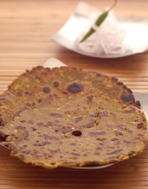 Chef’s tip: To make bhajnee flour, dry roast separately 110g whole-wheat grains, 115g rice, 250g sorghum grains (jawar), 225g millet grains (bajra), 35g black chickpeas (kala chana), 75g split black gram (urad dal), skinned and 25 g coriander seeds. Leave to cool, then mix and grind to a fine powder. This will yield 550 g flour. It can be stored for up to 1 month.